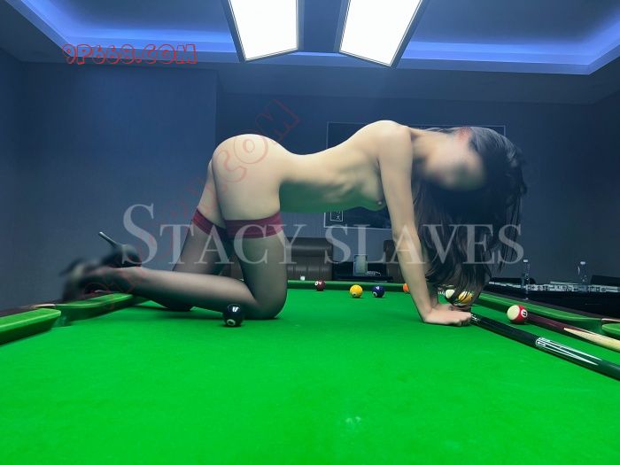初次见面大方主动的stacy进来就撩起开叉的小裙子,勾人的倚在台球桌边,请求小哥哥教教她‘一杆进洞’的秘诀